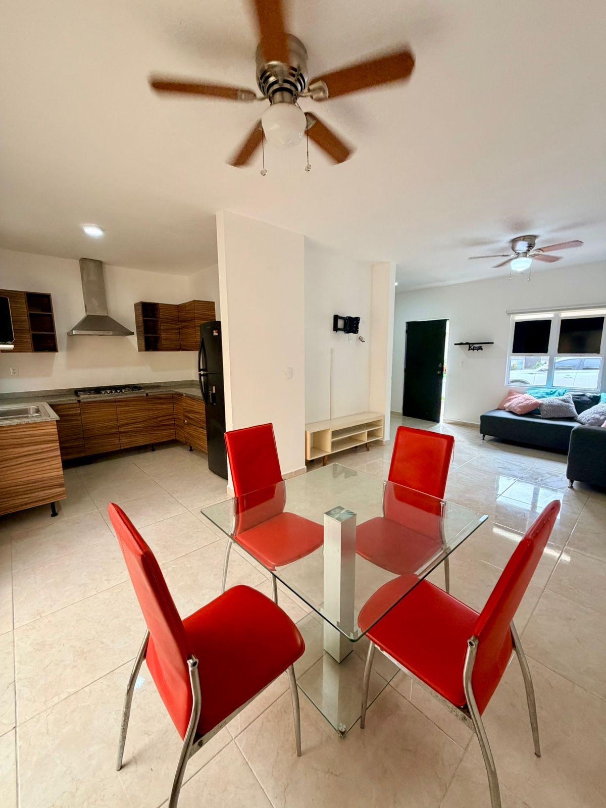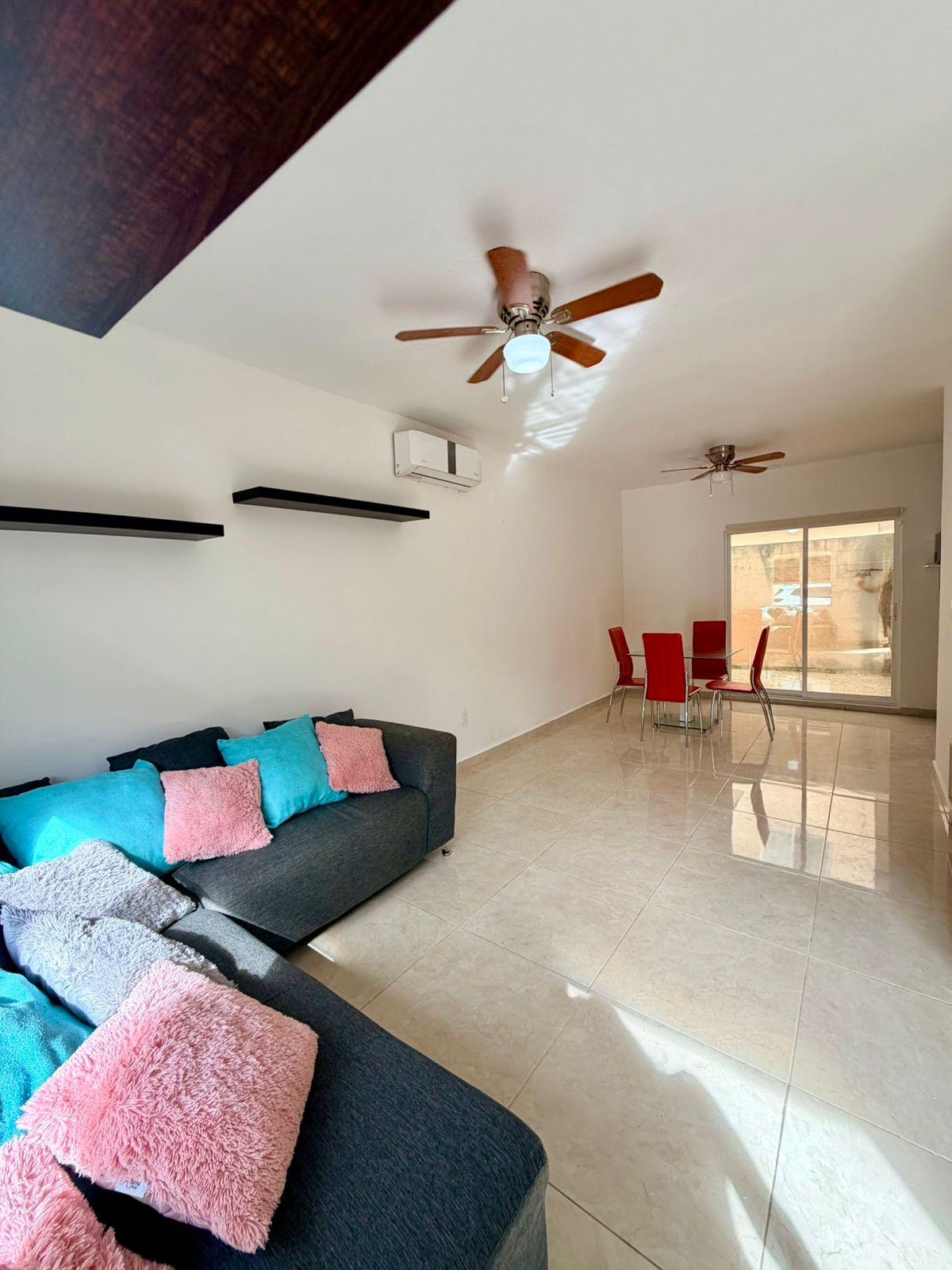 Rento hermosa casa de 3 recámaras en Residencial Catania, amueblada. Precio $17,500 MXN incluido. Área habitable de 112 m2.